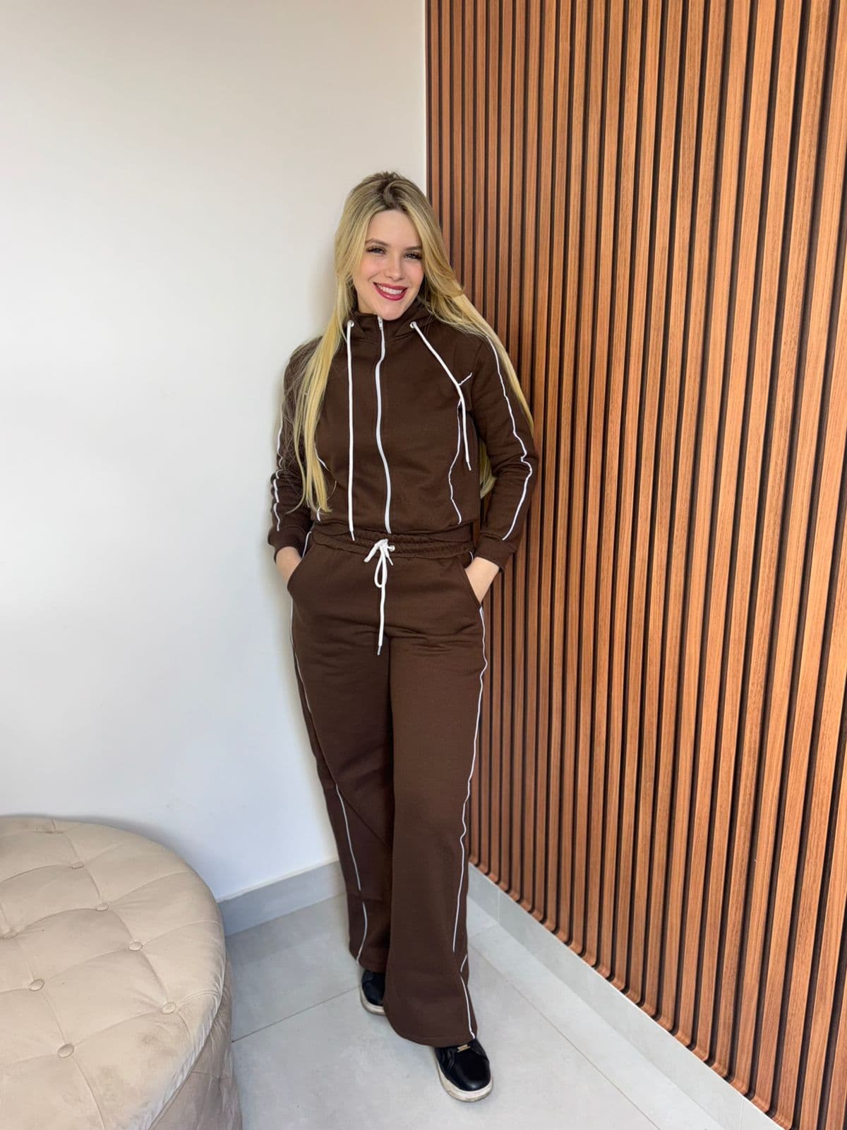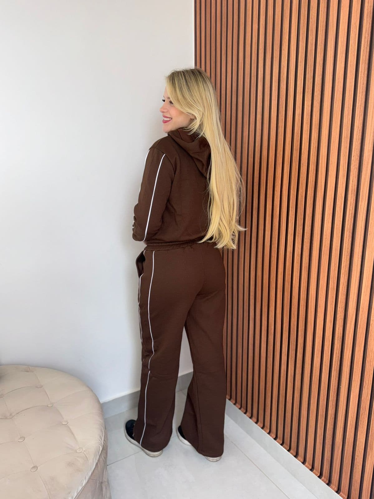 Renove seu guarda-roupa com este conjunto de moletom feminino cheio de atitude! Com um toque esportivo e moderno, o destaque fica por conta das listras laterais, que valorizam o visual e alongam a silhueta. Ideal para quem busca praticidade sem abrir mão do estilo.