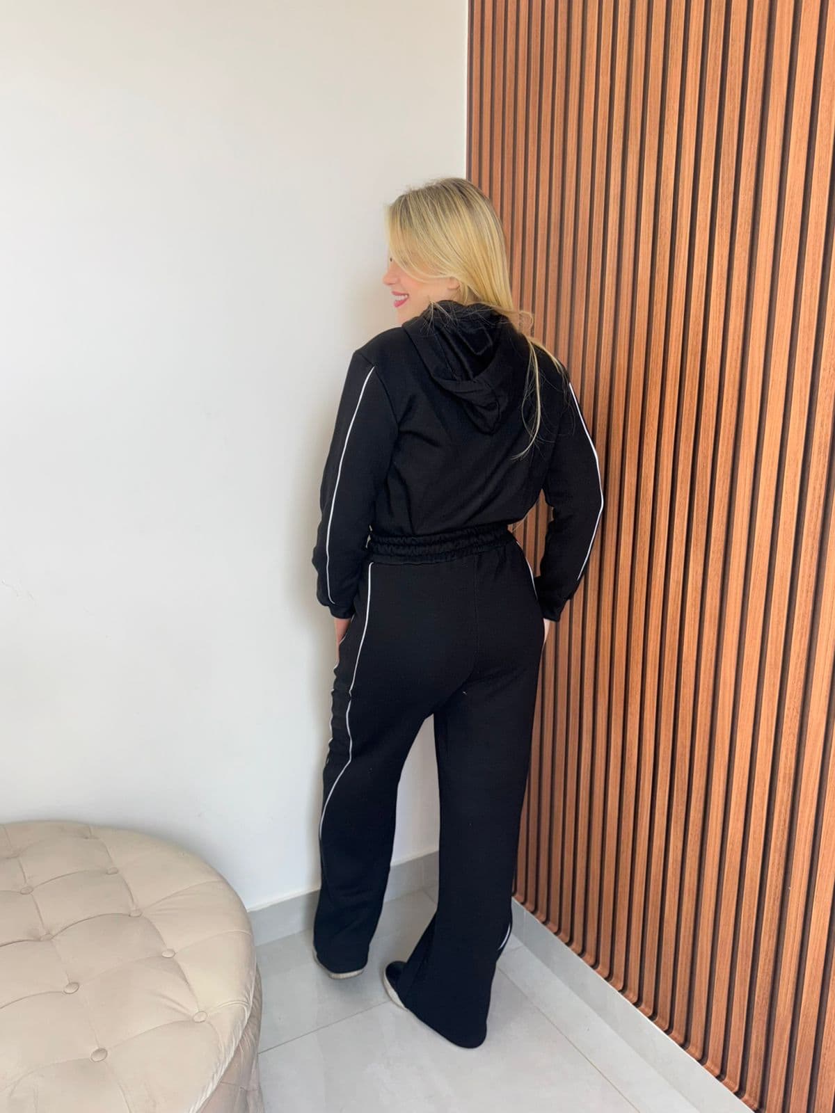 Renove seu guarda-roupa com este conjunto de moletom feminino cheio de atitude! Com um toque esportivo e moderno, o destaque fica por conta das listras laterais, que valorizam o visual e alongam a silhueta. Ideal para quem busca praticidade sem abrir mão do estilo.