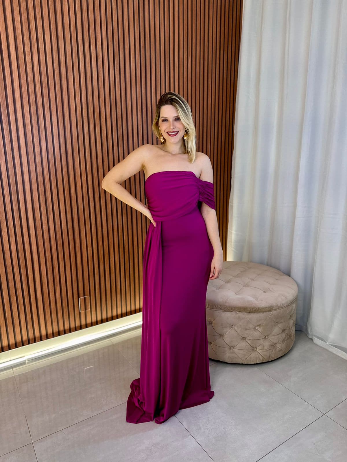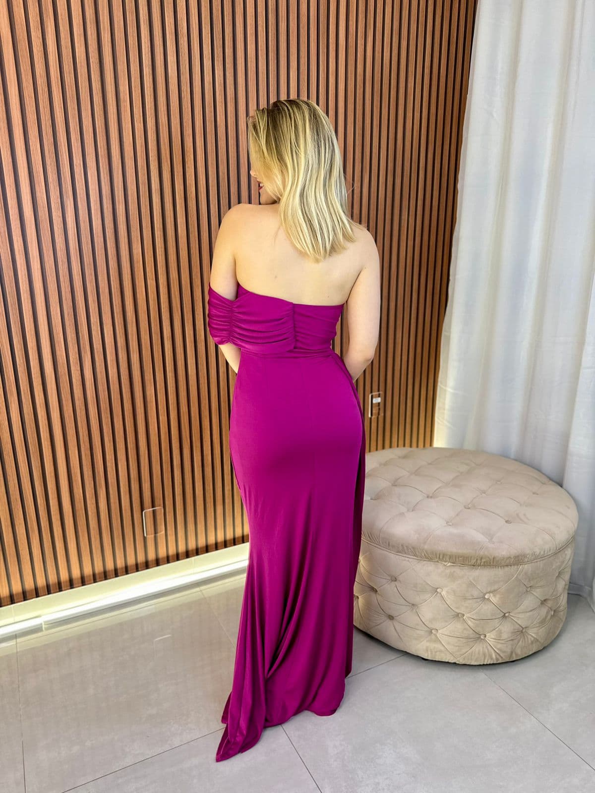 Vestido de festa longo, elegante e sofisticado, ideal para ocasiões especiais.